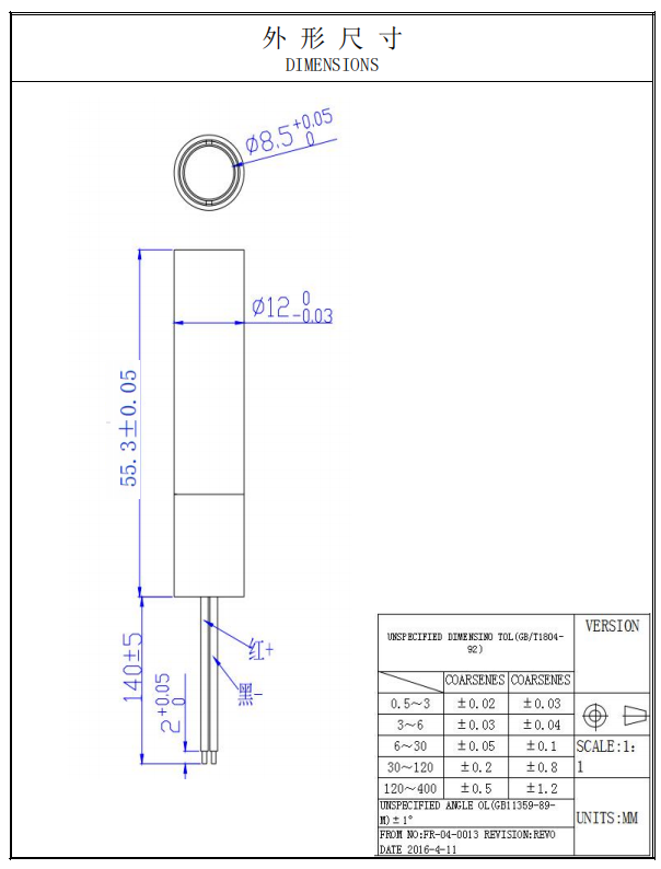 | Housing Size | 12*55.3mm (Customizable) |