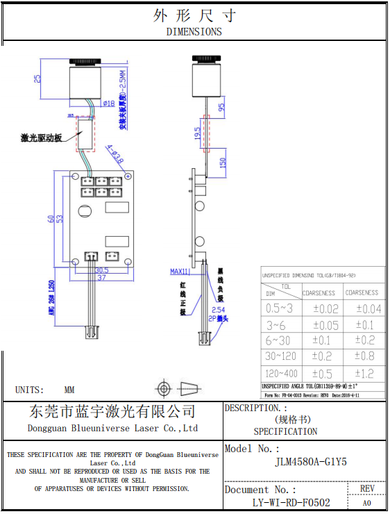 Featuring a compact outer dimension of Φ18×25mm, the module delivers a stable blue laser output at 450nmnm with an output power of 80mW. It operates on a 12V DC input voltage with an input current exceeding 1000mA, ensuring consistent energy supply for plant growth illumination needs. The laser emits a line-shaped beam with an irradiation distance of 1M (line width 10CM) and a lens angle of 130°, providing wide and uniform light coverage for plant canopies.