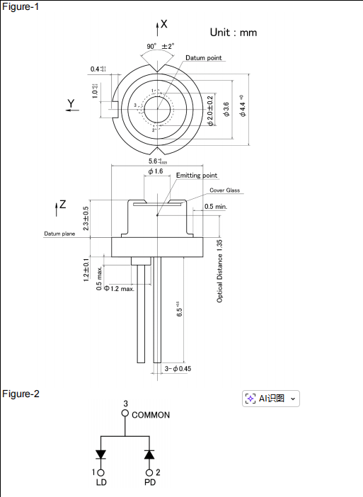 In terms of beam performance, it offers tight beam divergence (9.5° parallel, 17° perpendicular typical) and minimal beam tolerance (±3° parallel, ±4° perpendicular), ensuring focused, consistent light delivery. Housed in a compact package, it functions reliably across a -10 to +60°C operating temperature range and withstands -40 to +85°C during storage, with a 2V reverse voltage rating (20V for the PIN PD).
