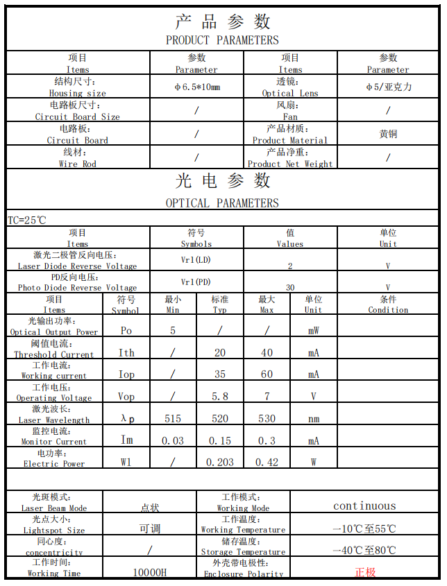 Its mini design adds big value: this 520nm 5mW Green Dot Laser Diode module’s diameter is under 8mm, and it weighs just 2-3g. You can easily tuck it into small aiming devices, mount it on lightweight brackets, or integrate it into handheld tools—no bulky setup needed.