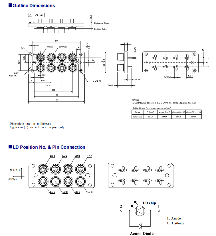 - Durability: Withstands a maximum 2.3A forward current (per individual LD) and 85mA reverse current; operates in 0–65°C ambient temperatures (storage range: -40–85°C) for versatile environmental compatibility.