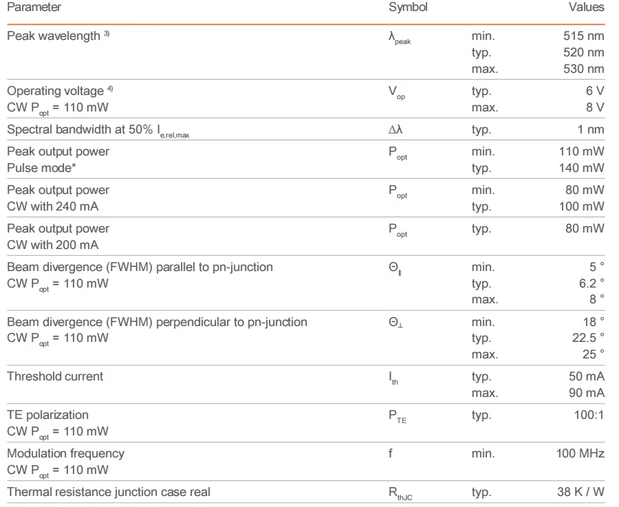 PLT3 520D 520nm 140mW Green Laser Diode in TO38 ICut Package
