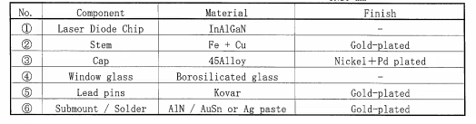 | Blue | 462nm/ 465nm | 1.4W- 2.8W | TO5-9mm |