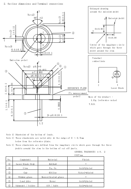 | Blue | 462nm/ 465nm | 1.4W- 2.8W | TO5-9mm |
