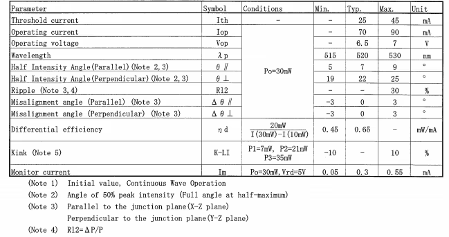 Wavelength: 520nm (typ.)